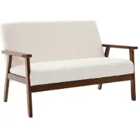 Sweeek - 2-zitsbank in licht walnoot gebeitst hout en bouclette stof, isak, b 114 x d 69,5 x h 73cmv.a.149,99