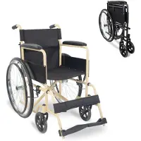 Mobiclinic Denver - Rolstoel - Opvouwbare rolstoel - Afneembare rugleuning en voetensteun - Staal - Grote wielen 45cm - Zwart en beigev.a.147,95